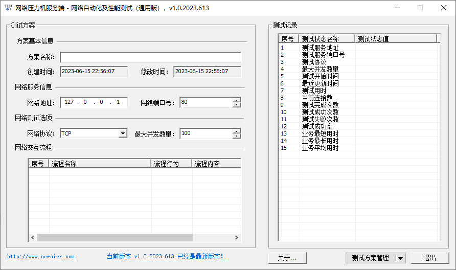 网络压力机服务端是一款用于网络自动化及性能测试的服务端应用软件,主要实现基于自定义网络交互流程的网络协议和性能自动化测试,支持高并发、大容量数据收发测试网络服务。