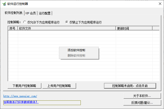 软件运行控制器软件是一款控制应用软件运行的软件,能够基于云端实现软件运行控制策略的备份与还原,并将单用户配置信息自动同步多终端,极大方便使用。